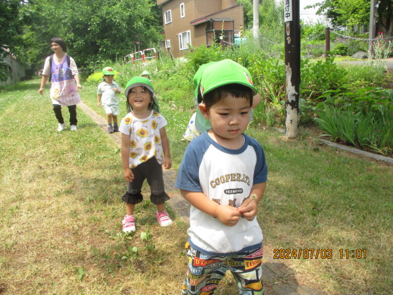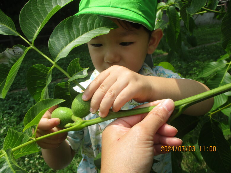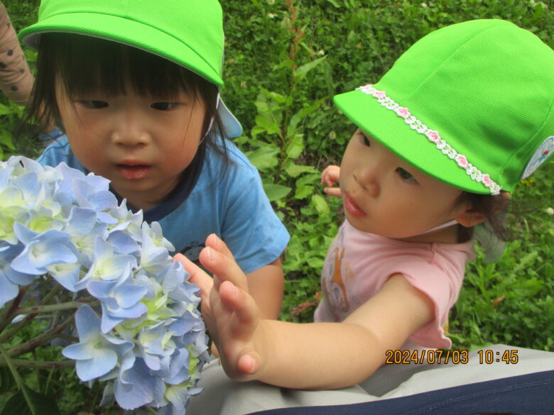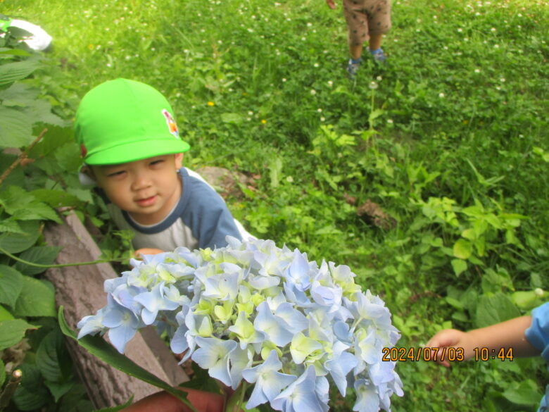 東公園に行き紫陽花やくるみを見つけ自然に触れて楽しく遊びましたよ♪