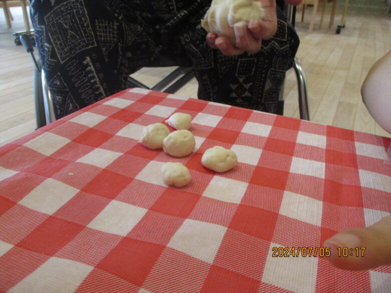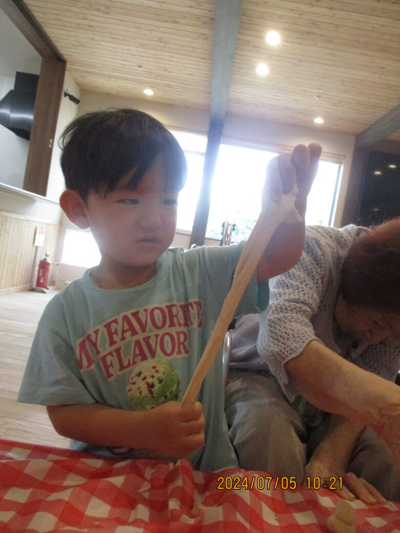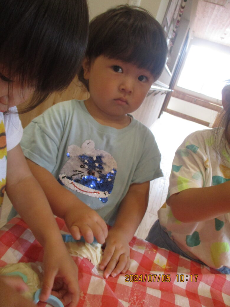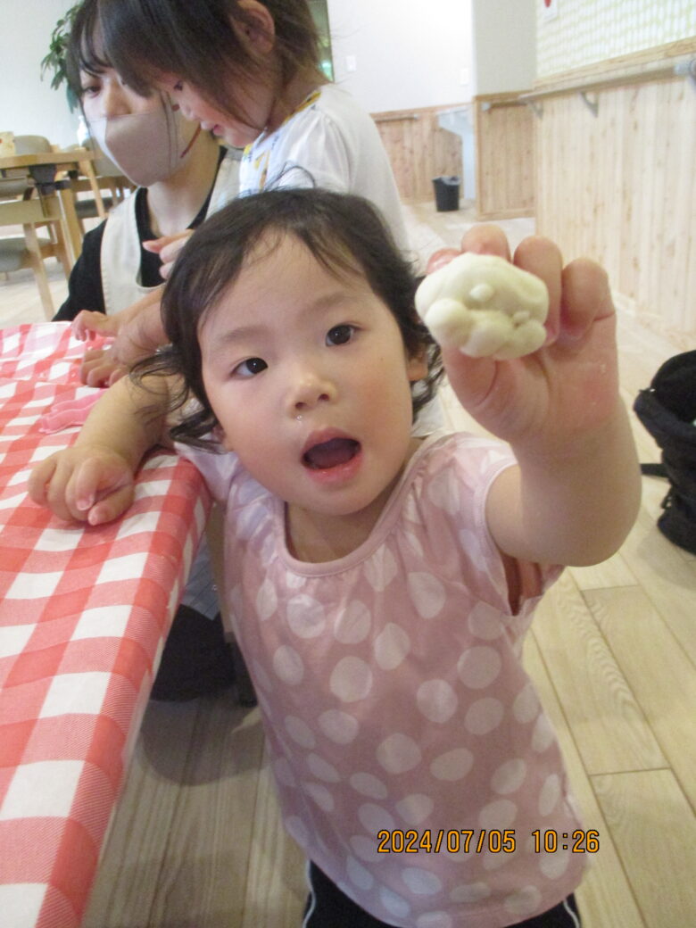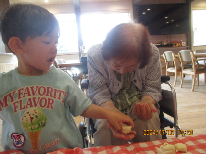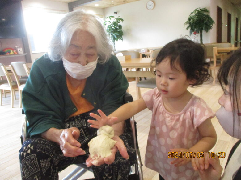 「はい、どうぞ」と言い利用者の方に渡したり、アンパンマンを作って「みてー」と言っている子もいましたよ。