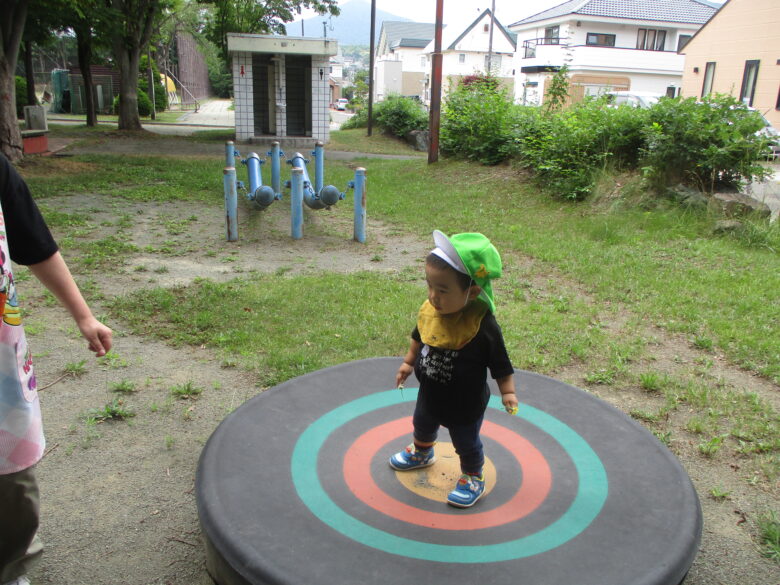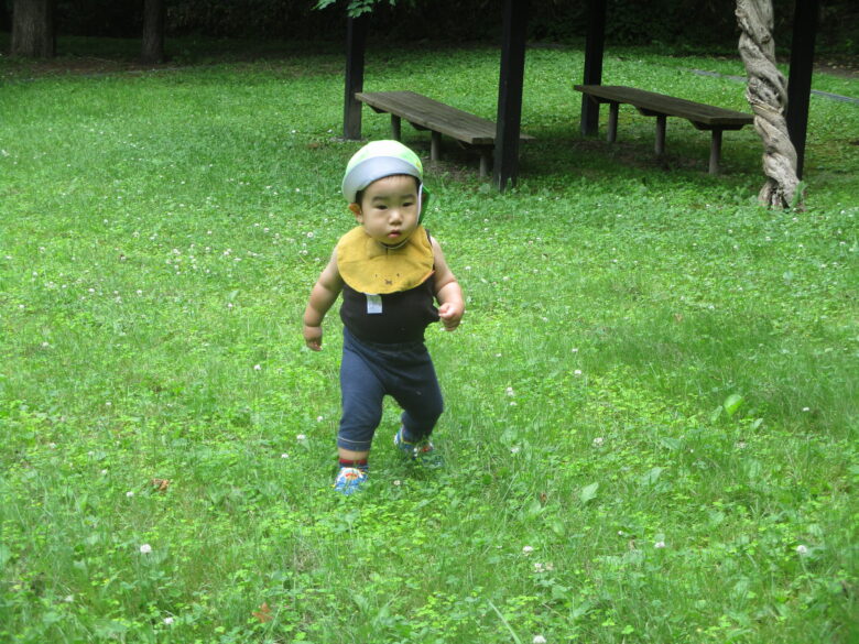 今日は一人の登園だったこともあり、普段いけない高台公園に行ってきました。 坂道を頑張って登っています。