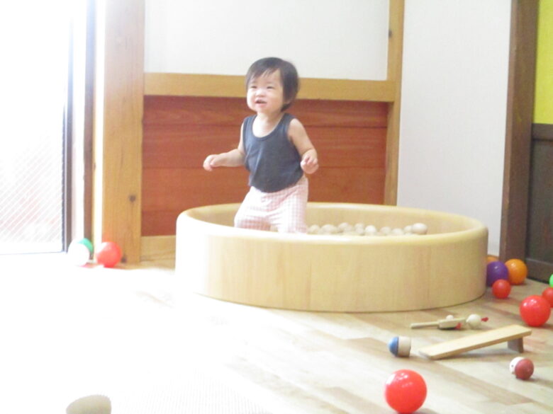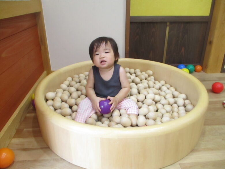 木のボールプールも子どもたちのお気に入りです🌳
