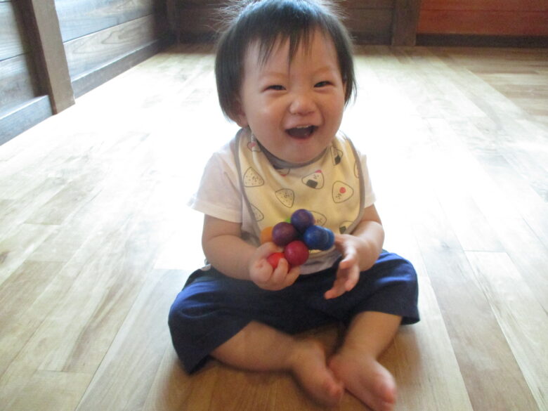 笑顔で楽しそうに遊び、転がる玩具では追いかけていましたよ。