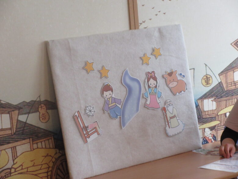 七夕の由来を聞きました。<br /> 真剣な顔・・!