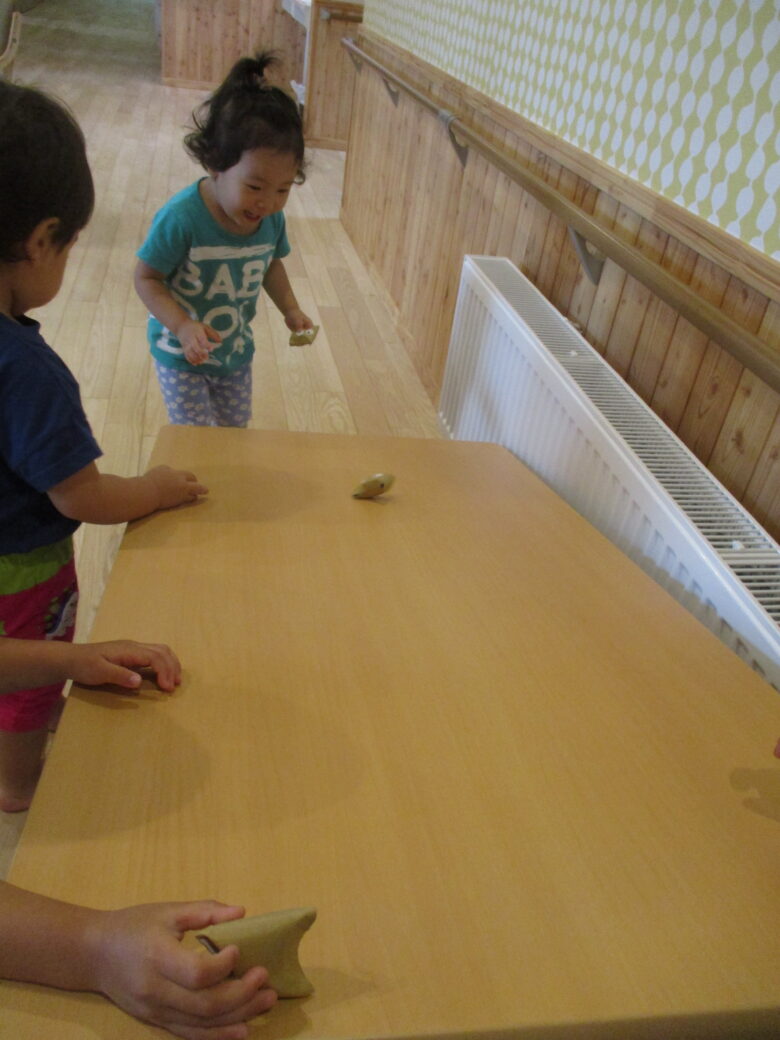 「すごーい」や「できたー」と言い楽しく転がして遊んでいましたよ♪