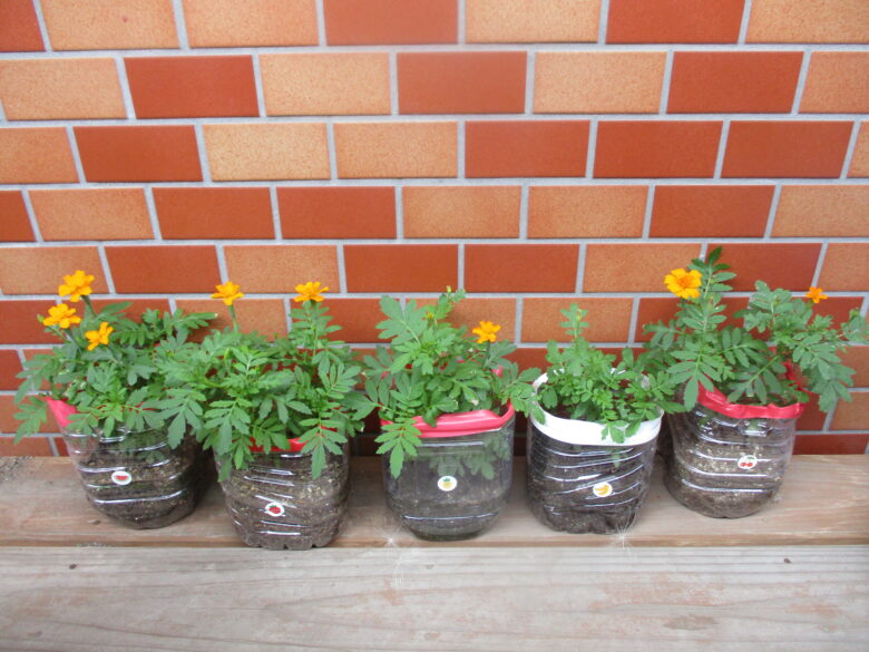 こちらは、くり組のマリーゴールドです❁ 大きい花や今咲いたばかりの小さくて可愛い花たちです👌