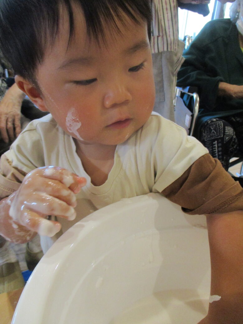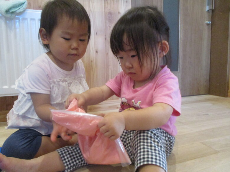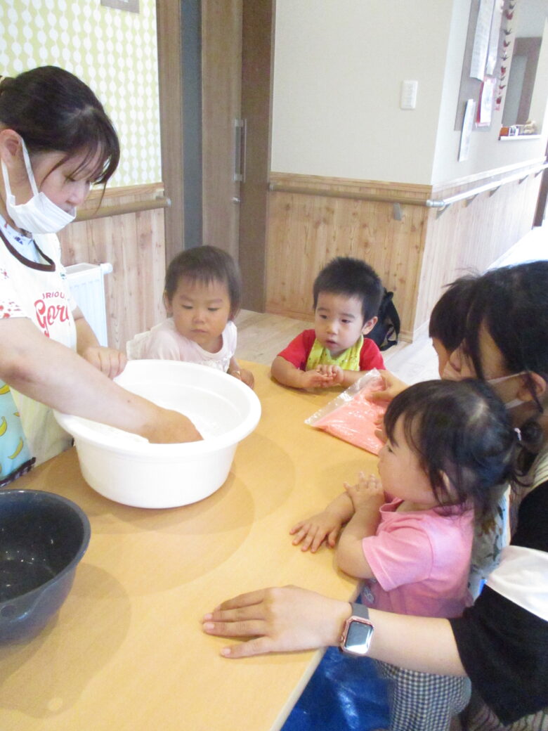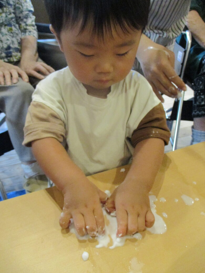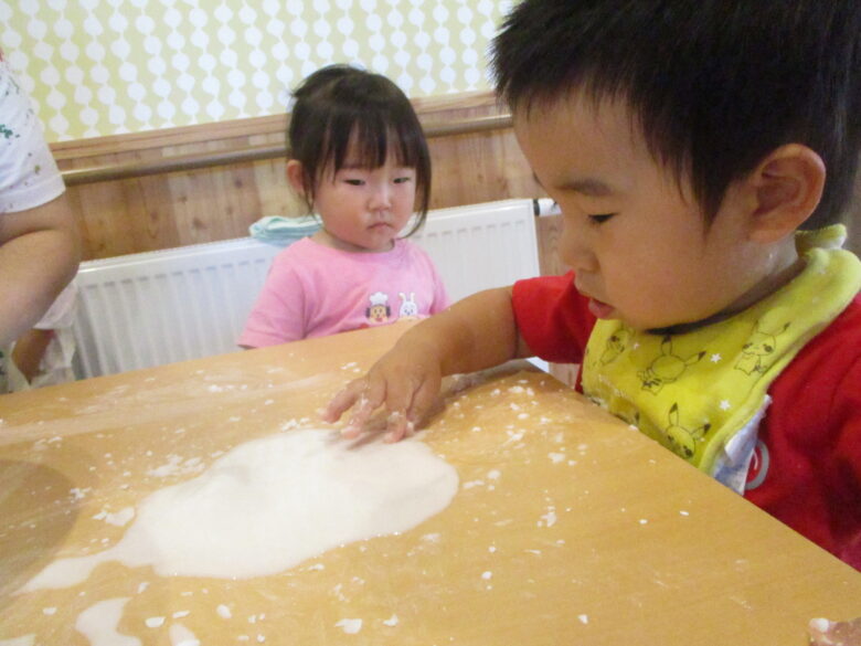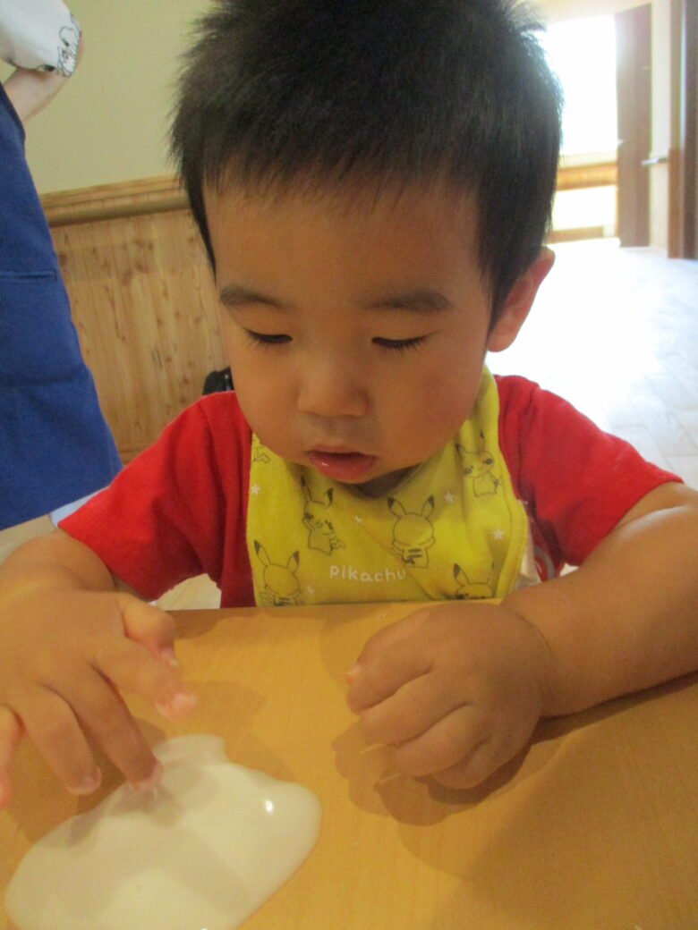 藤野園 くり組 無垢の家 片栗粉遊びをしたよ♪