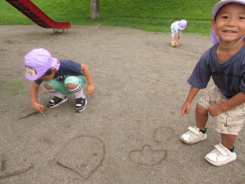 公園に着くとブランコ、砂にお絵描き・・ たくさん遊びました!