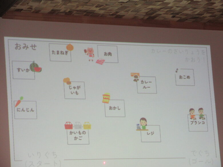お店でカレーの材料を買物してもらいます🧺