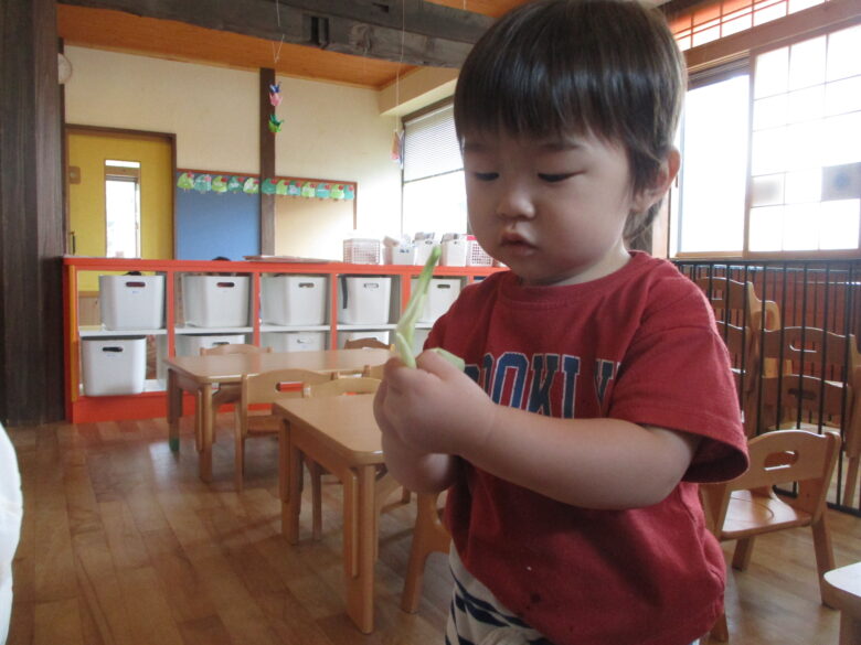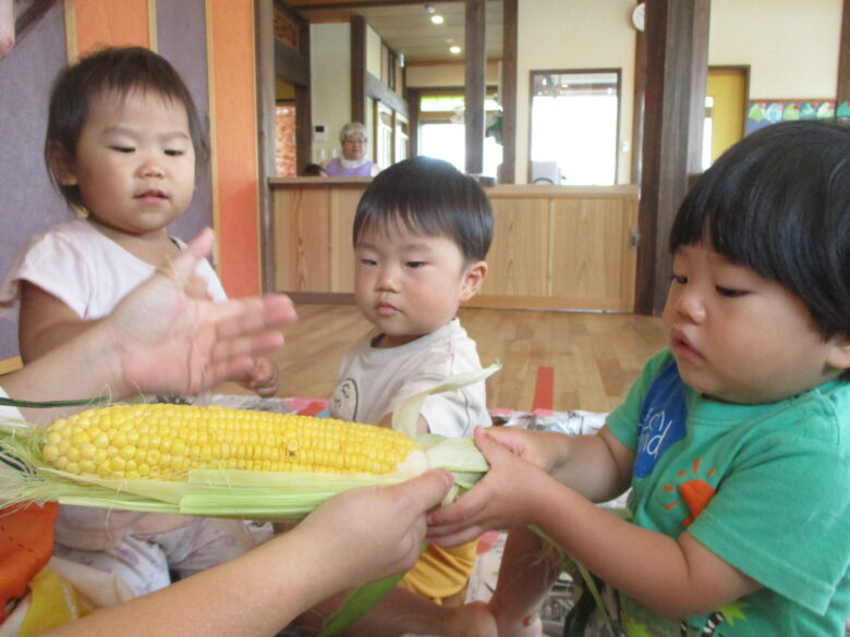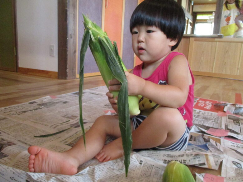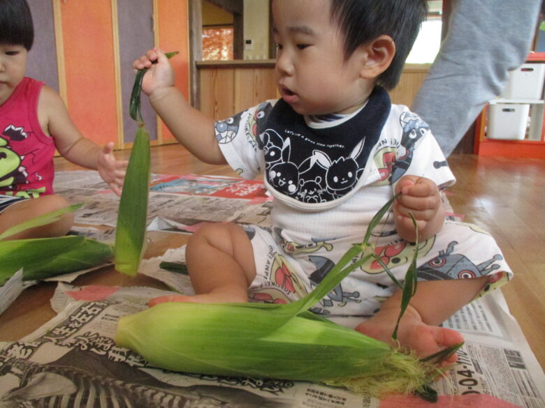 藤野園 くり組 とうもろこしの皮むきしたよ♪