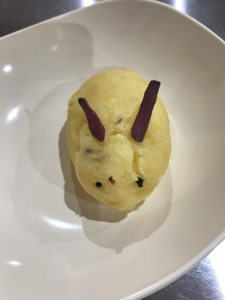 今日はお月見・・ 調理さんが、お月見バージョンの給食を! ごはんに旗を立ててくれました。そして、デザートのリンゴもうさぎちゃん(⋈◍>◡<◍)。✧♡ 極めつけが、おやつのスイートポテトもうさぎさん!かわいいし、美味しいし、子どもたちはとっても嬉しそうでした!