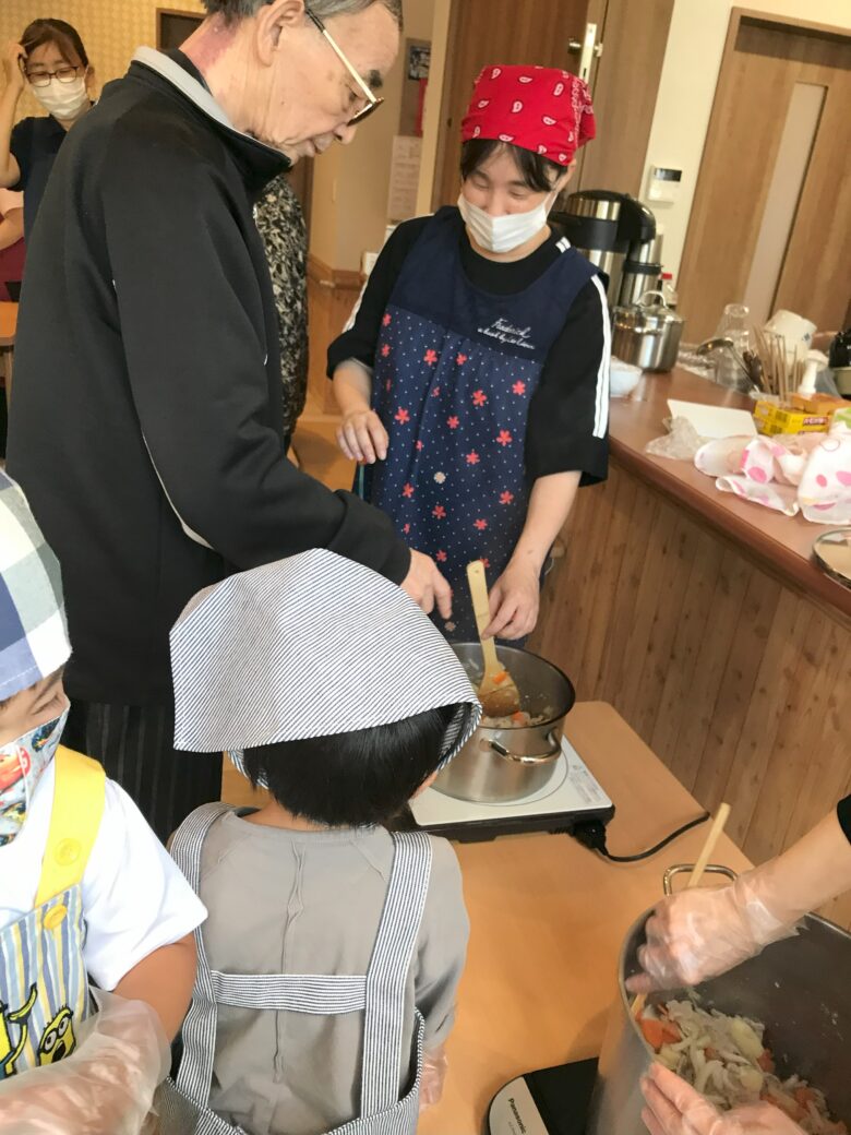 9月は敬老の日もあり、無垢の家の入居者さんにむけて子どもたちから長寿のお祝い会をしました。 一緒にカレーライスを作り、一緒に食べる幸せ💕 いつも以上に食欲モリモリで食べる、入居者さん🥰
