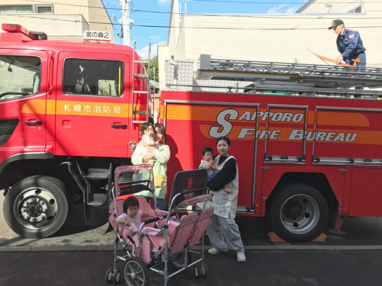 そしてお待ちかね!消防車の前でハイポーズ!📸