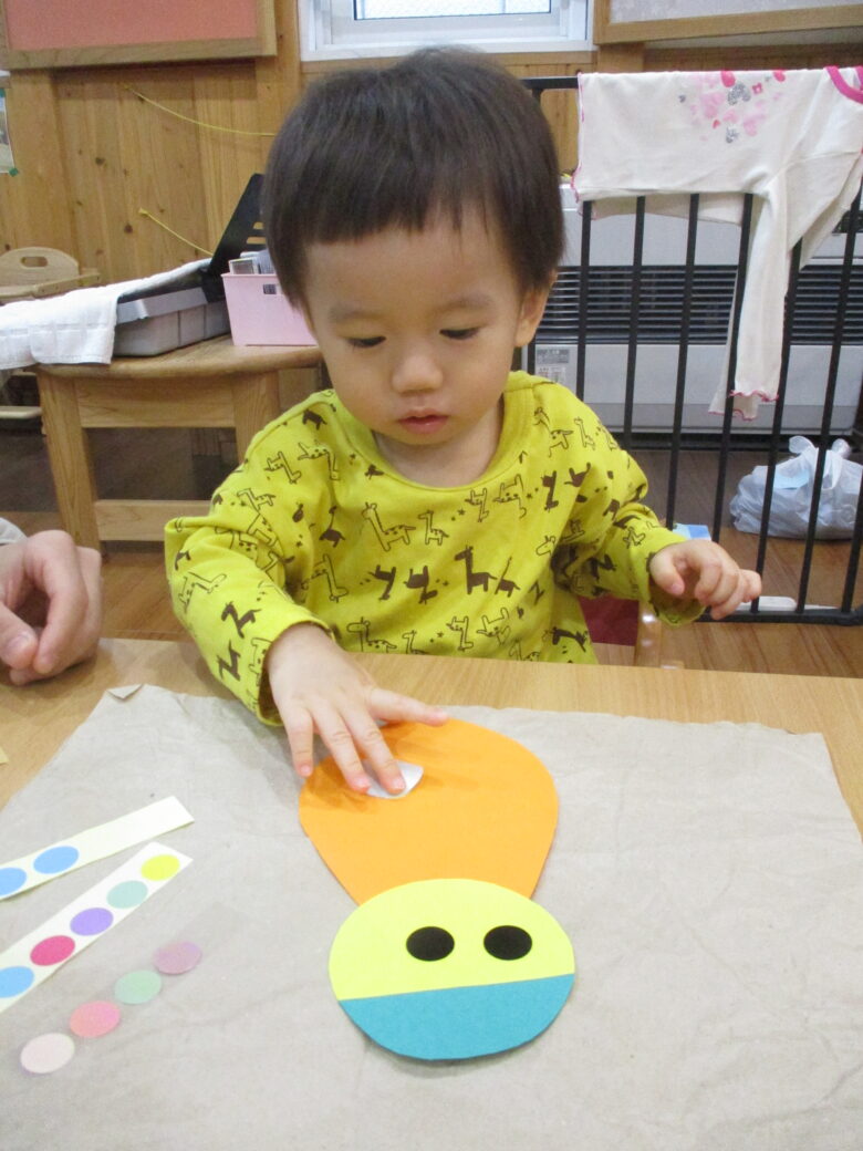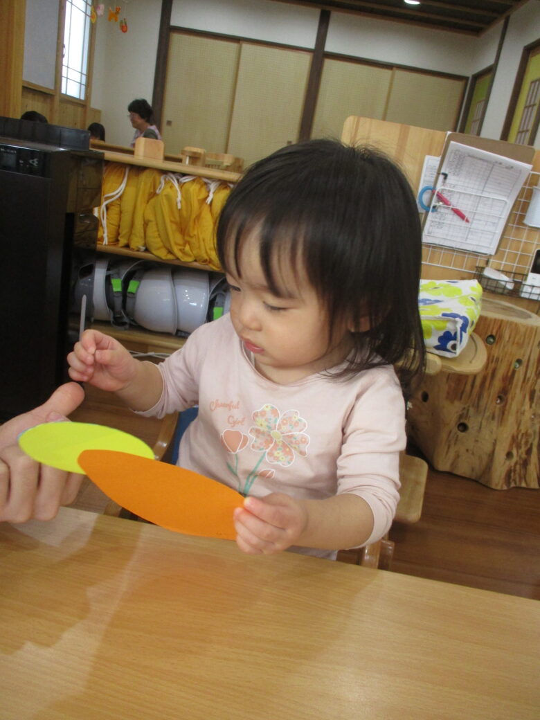 0歳児どんぐりぐみさんは、みのむしを制作しました。