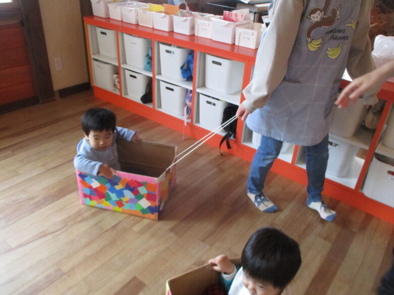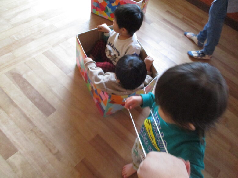 子ども達の大好きな段ボール汽車ぽっぽ♪