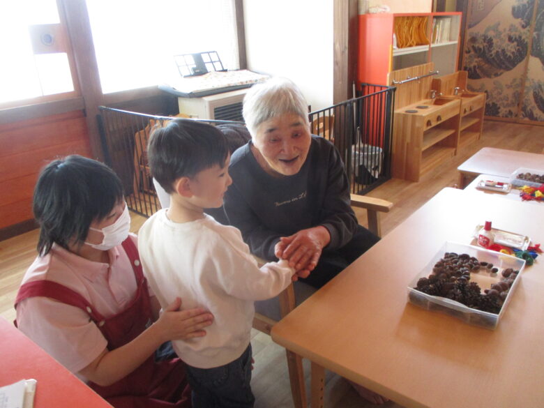 藤野園では毎日のように無垢の家に行っているので、利用者の方が来ると、「おはよう」といい、ハイタッチや握手をしています。
