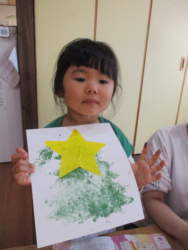 色々な素材を使用しクリスマスツリーを作りました♪