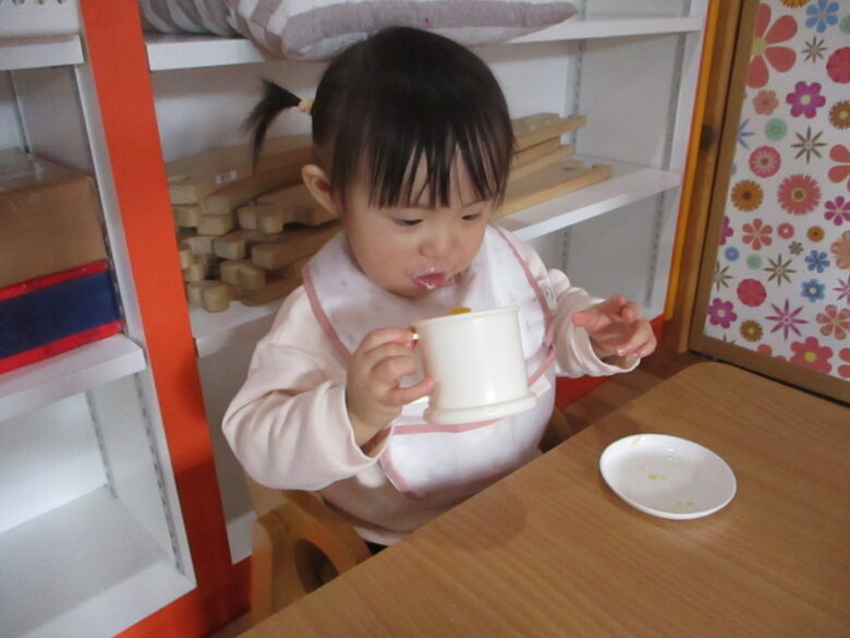 どんぐり組のお友だちも少しずつ歯が生えてきて、笑うと小さくて可愛らしい歯が見えています🦷