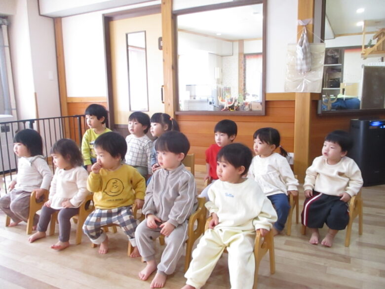 子どもたちにも元気いっぱい挨拶をしてもらい、司会の保育士とのやり取りも楽しんでくれています💕