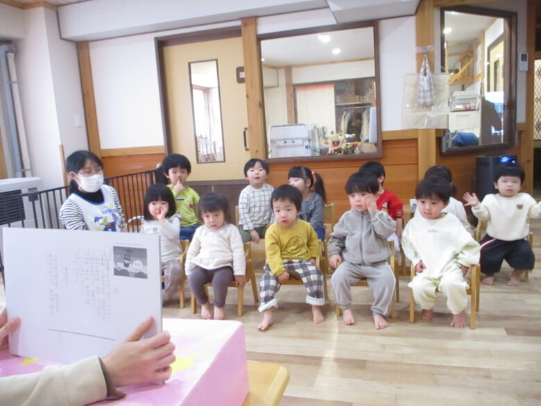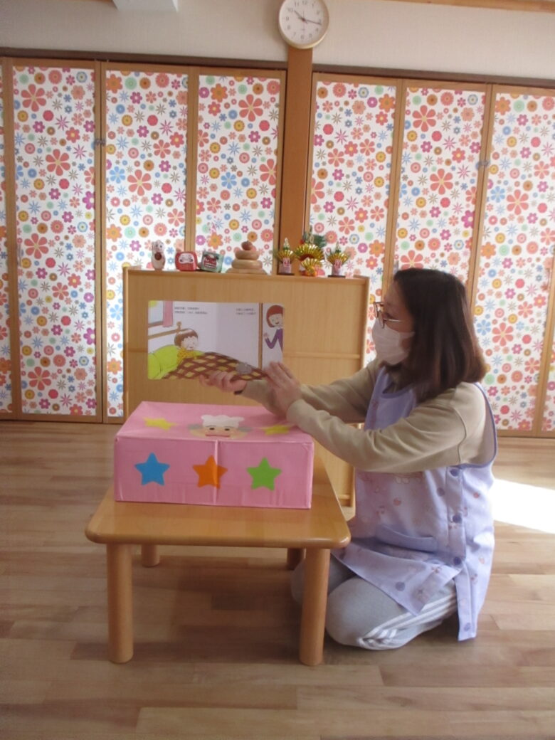 「あけましておめでとうございます。」の新年の挨拶についての内容の絵本を読み聞かせています📚