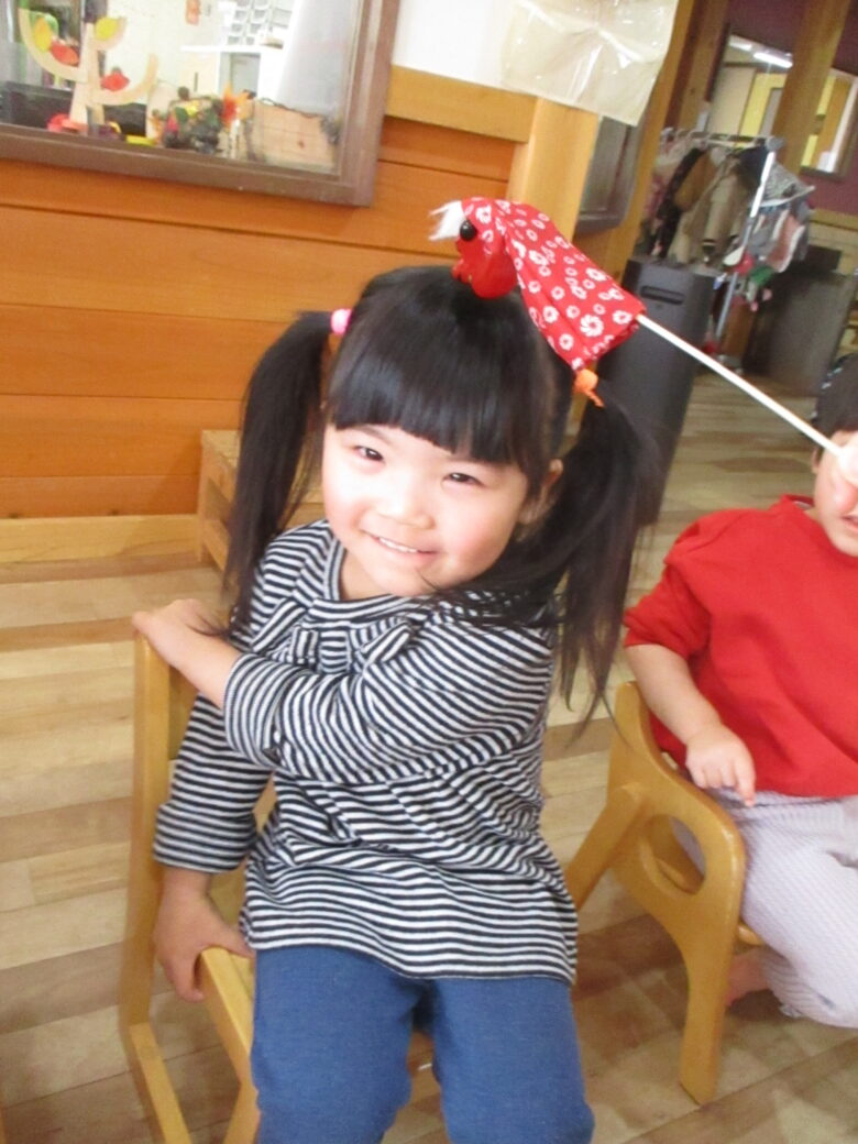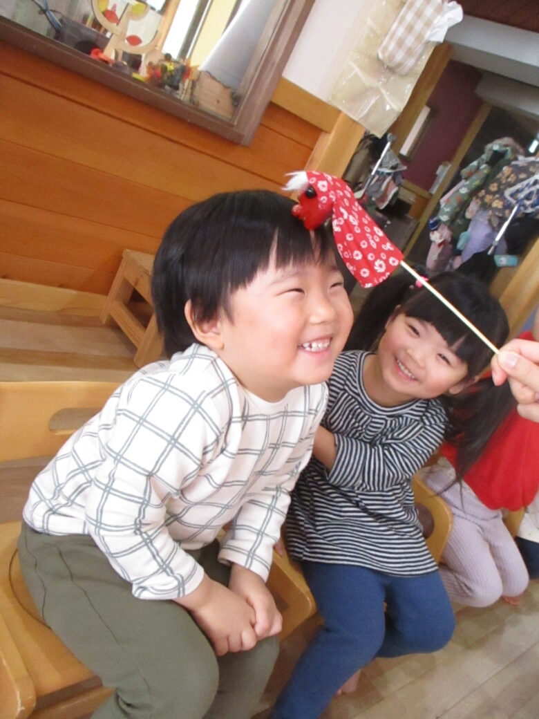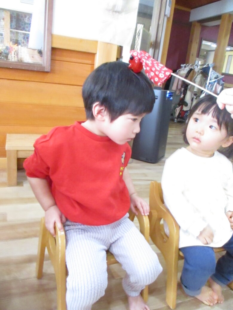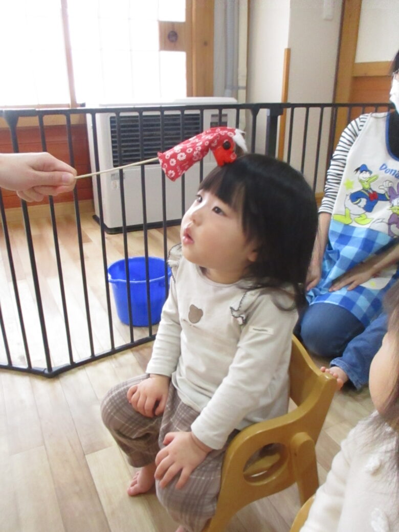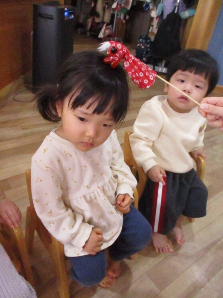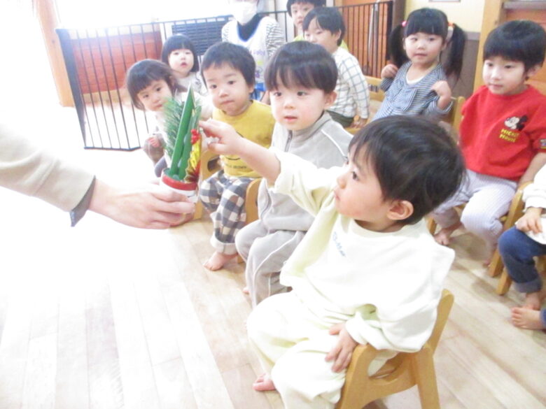 お正月の飾りにも興味を持って貰えるように、触ってみましたよ!