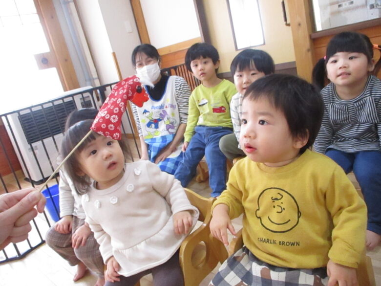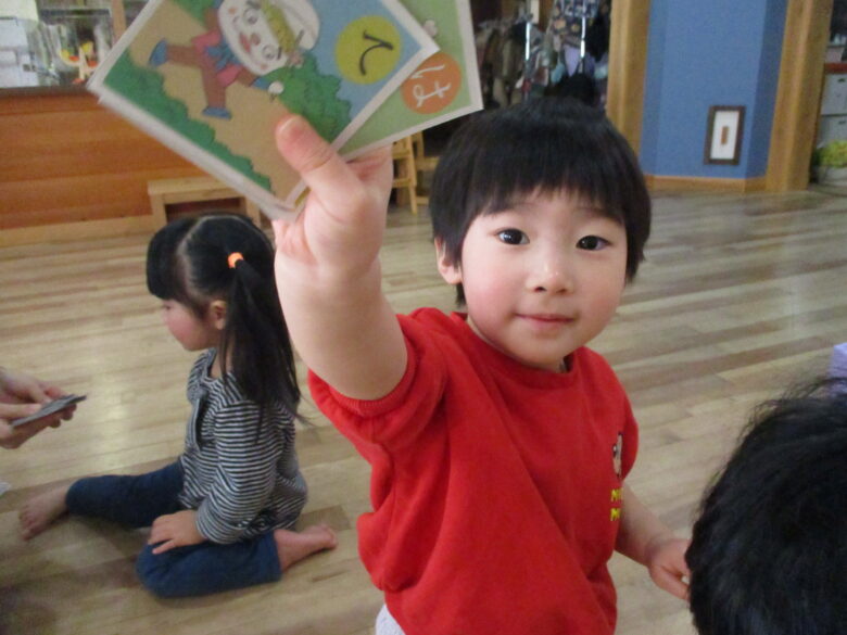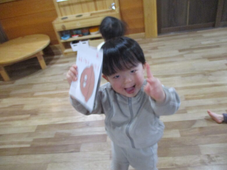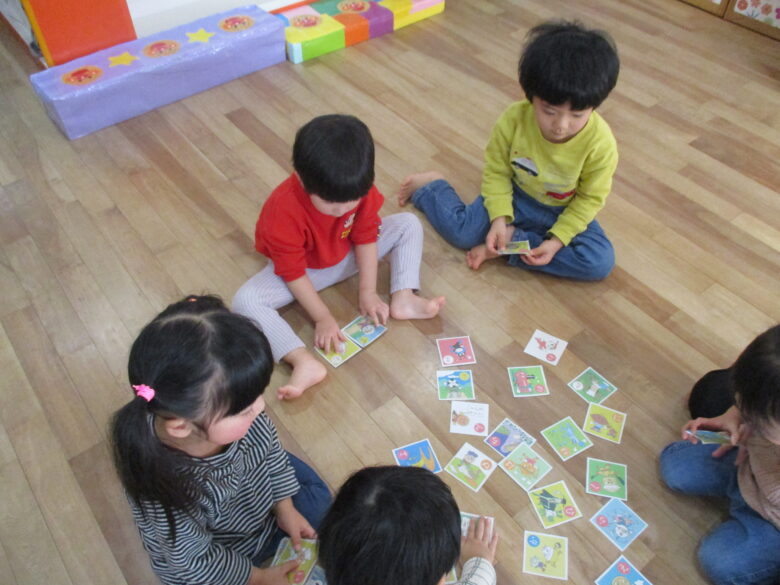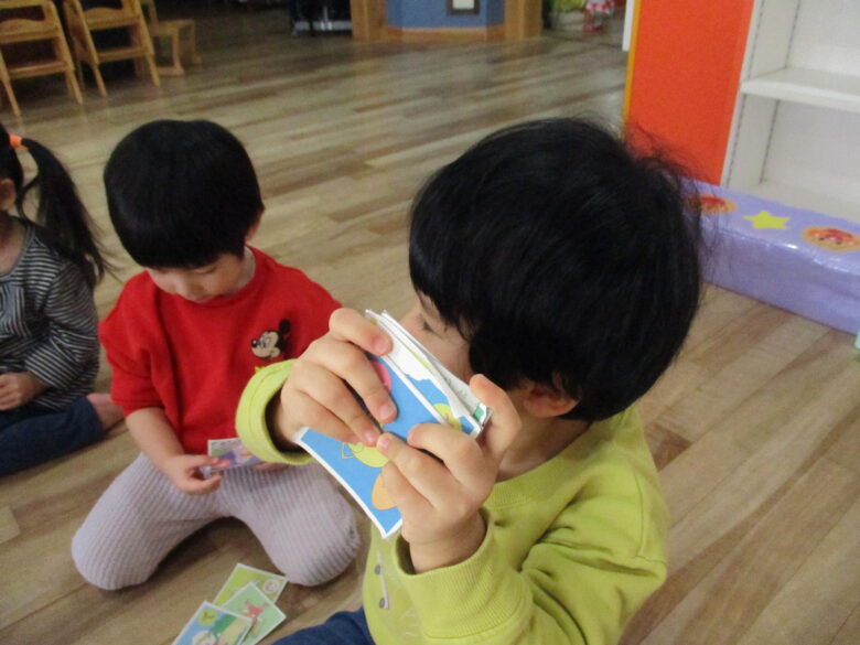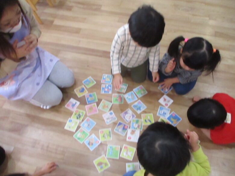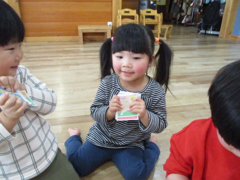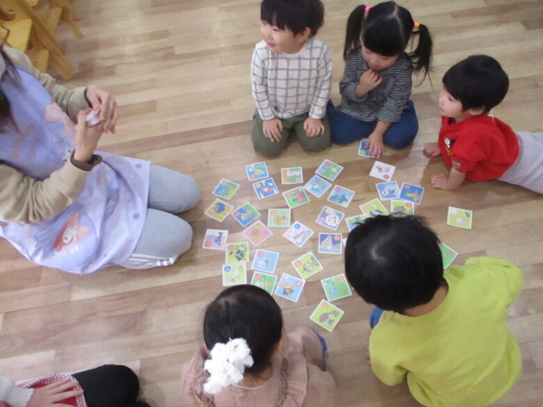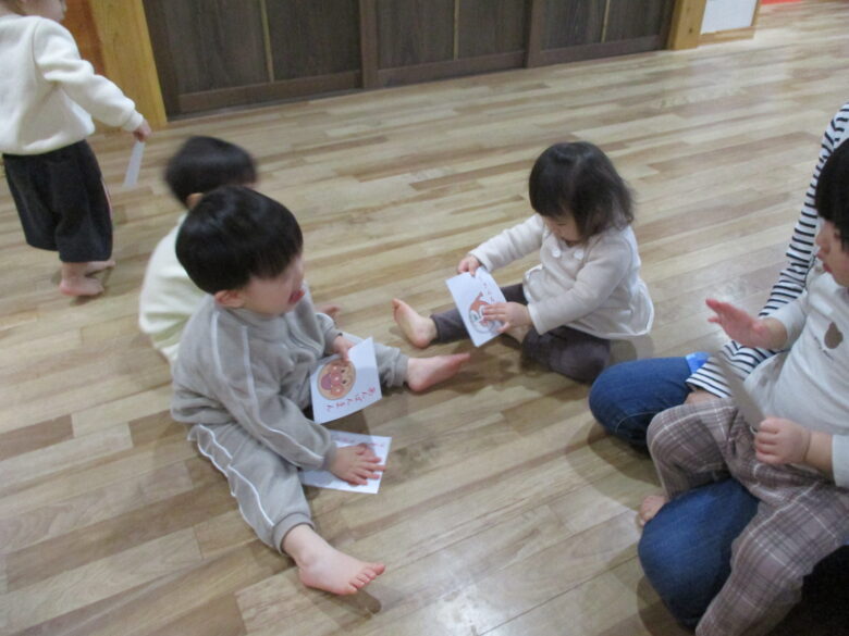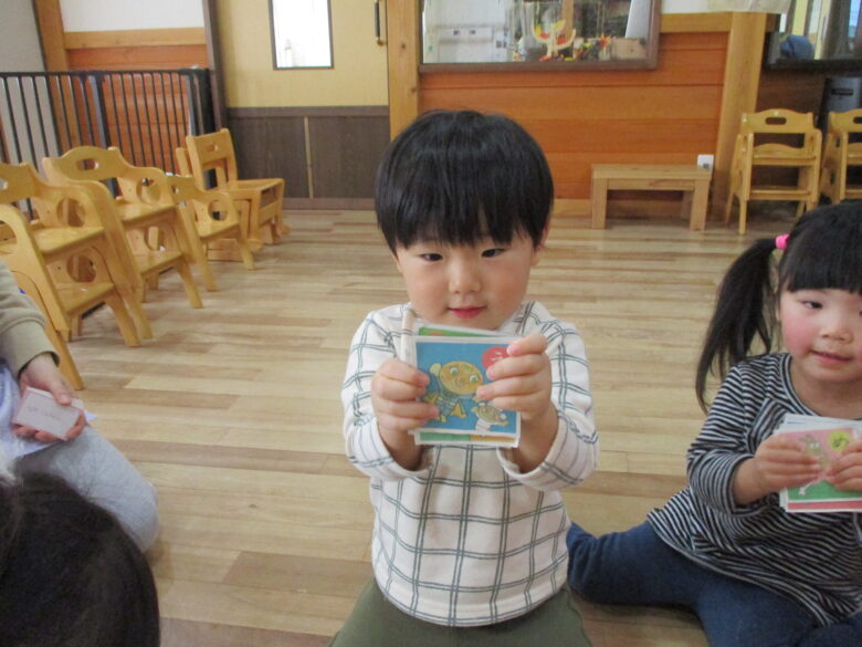 0歳児・1歳児は手作りのアンパンマンカルタで遊びました💞