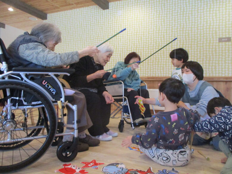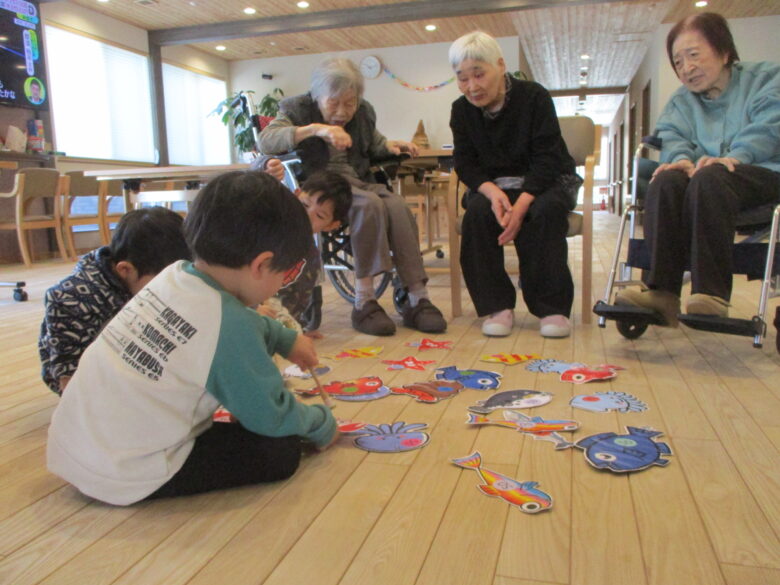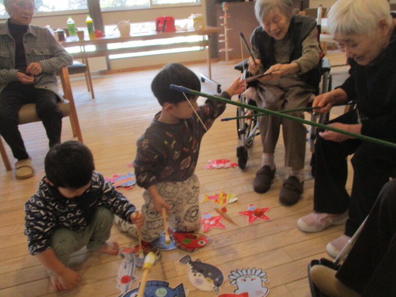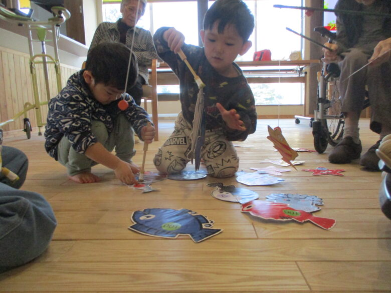 利用者の方も魚が釣れると、子ども達も一緒に喜んでいました。