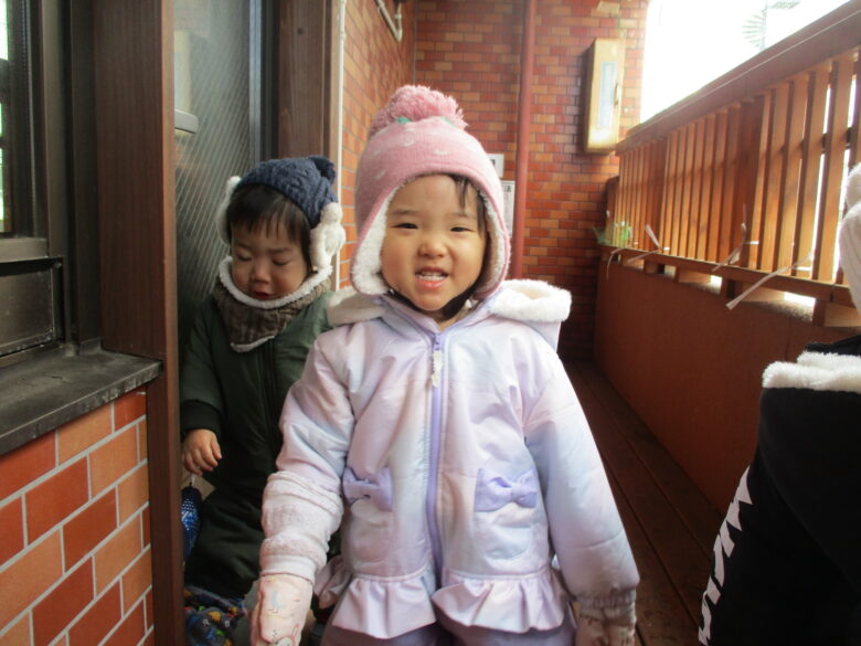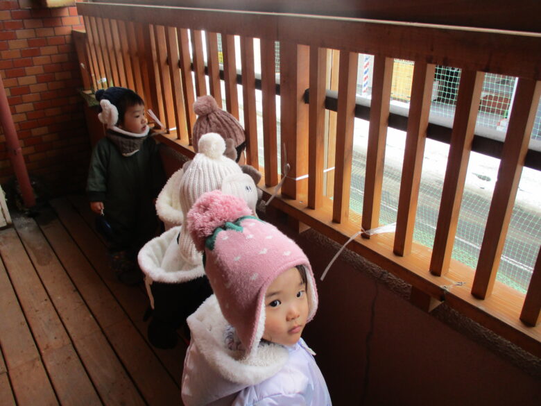 HOME ブログ・新着情報 白石園 くり組 ベランダで遊んだよ❄️🌨️