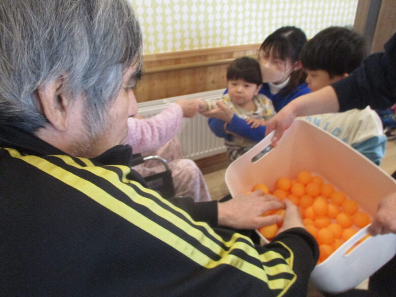 木曜日のくるみ組の活動では、無垢の家でピンポン玉つかみ取りゲームをしました!!