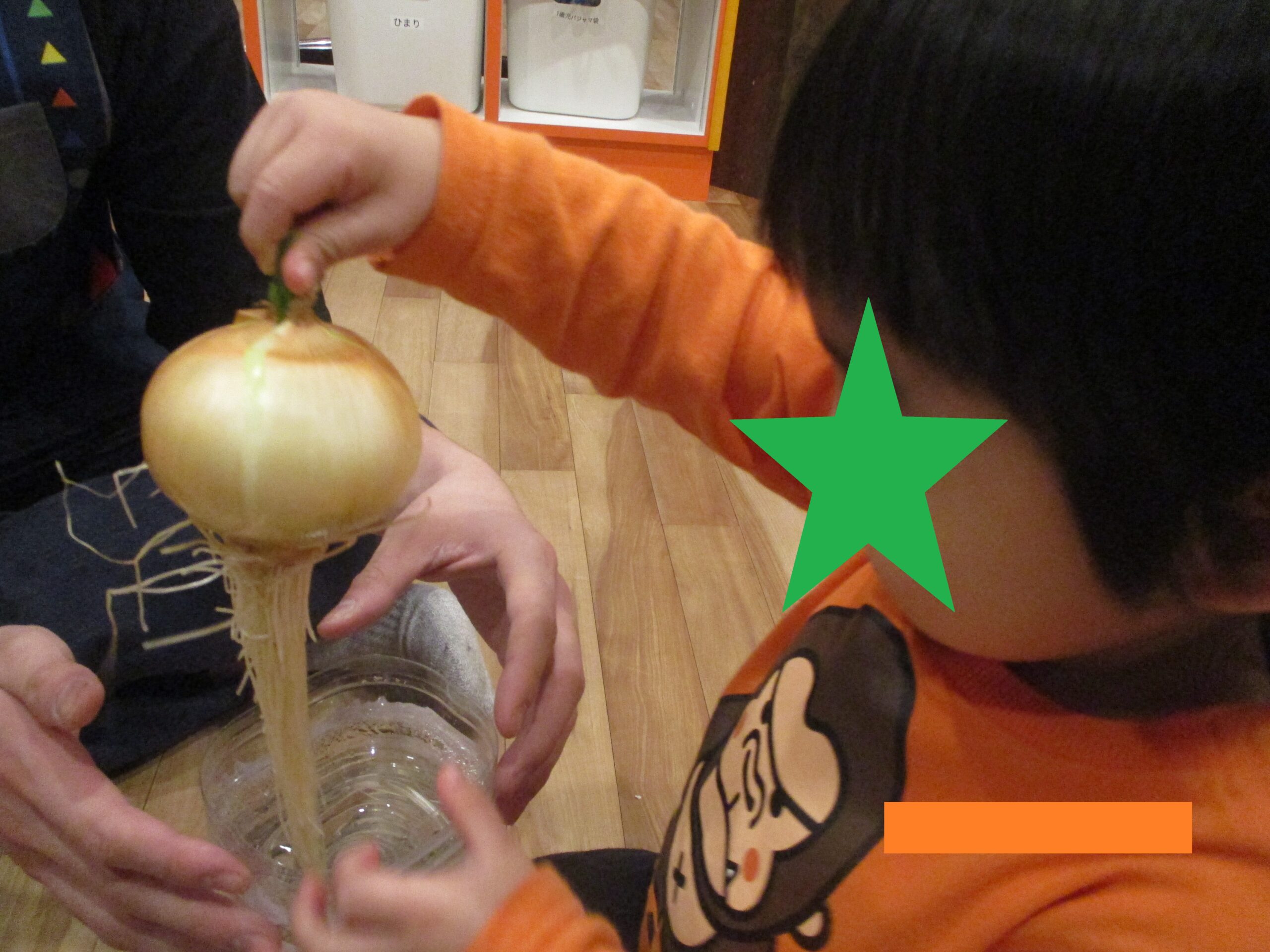根がどんどん伸びているのを見て子ども達は「びよーん」と言いながら