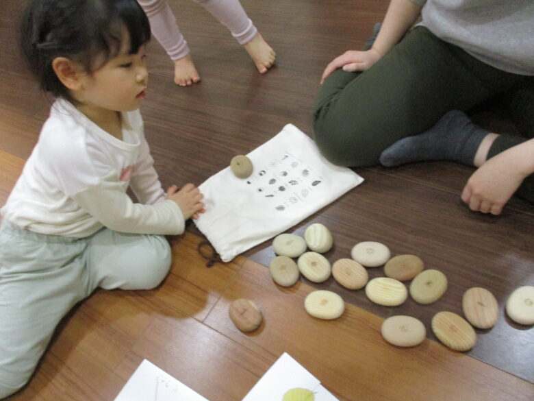 保育者や友だちと「これかなぁ?こっちじゃない?」「合った~!」とパズルの様に楽しむ姿が見られました。