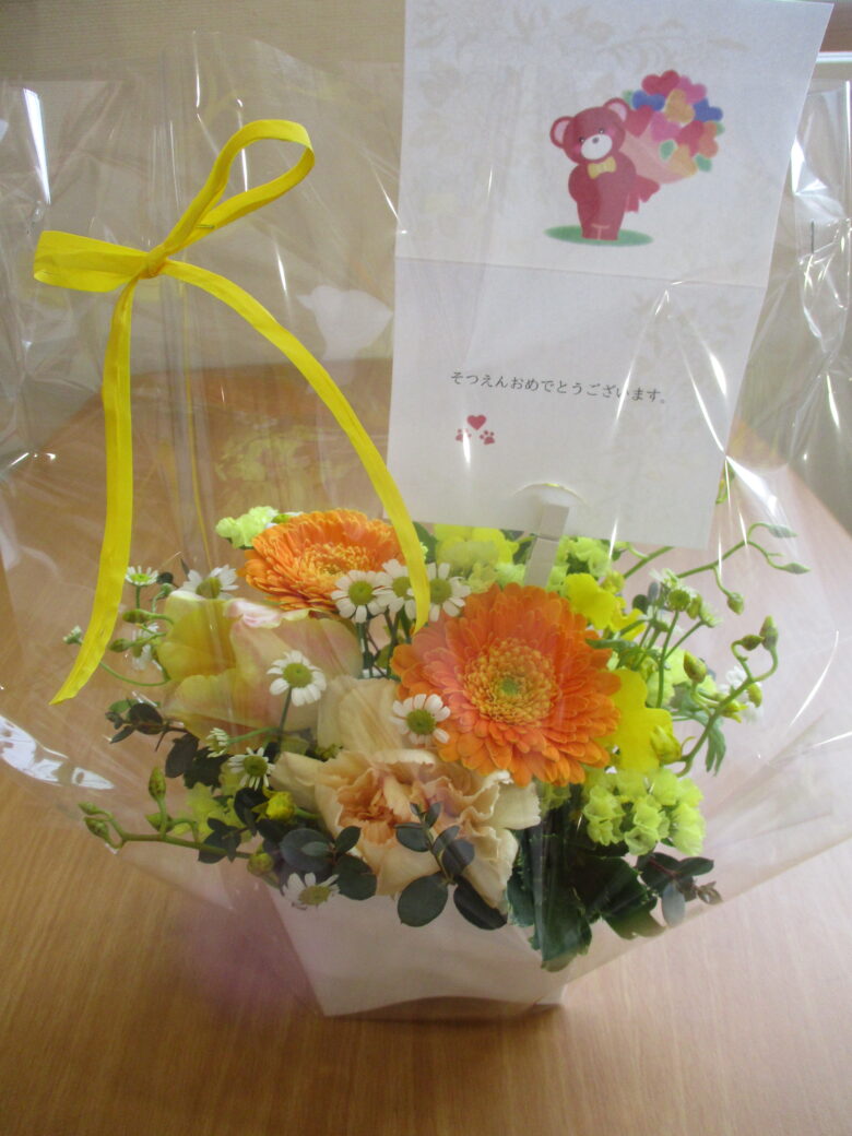 一人ずつ、名前が呼ばれて担当保育士からガーベラ1輪受け取ると「ありがとう」とお父さんやお母さんに渡しました。