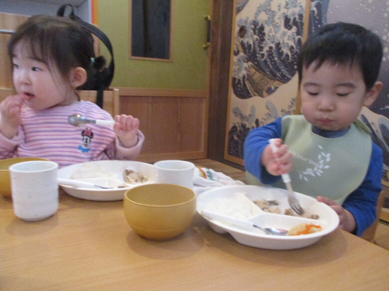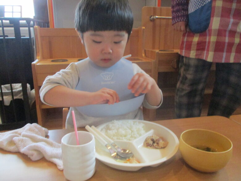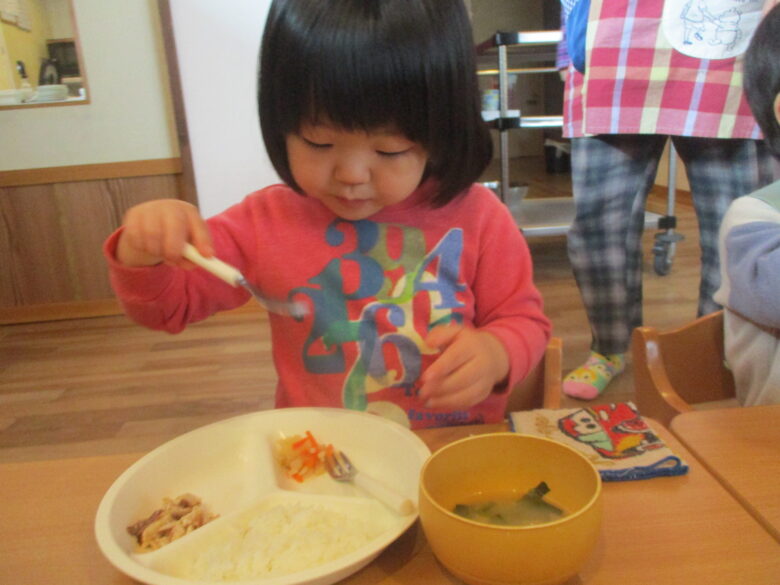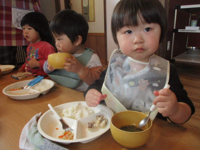 保育園に帰ってきてからは給食の時間。