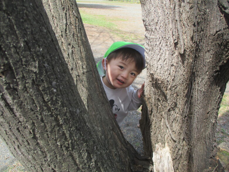 グラウンドの木の間から、「ばあ」と顔を出している可愛い姿が見られましたよ♪