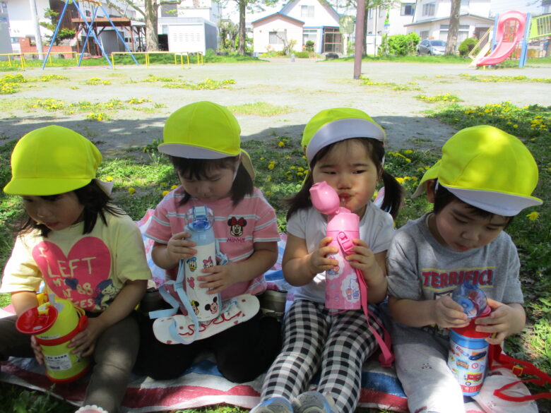 自分の水筒で水分補給をして、とても嬉しそうな子どもたちです。