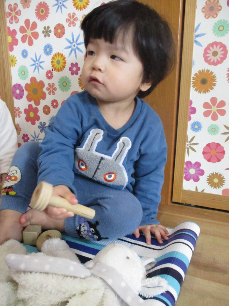 おそるおそる保育士と一緒に頑張ってます🐥