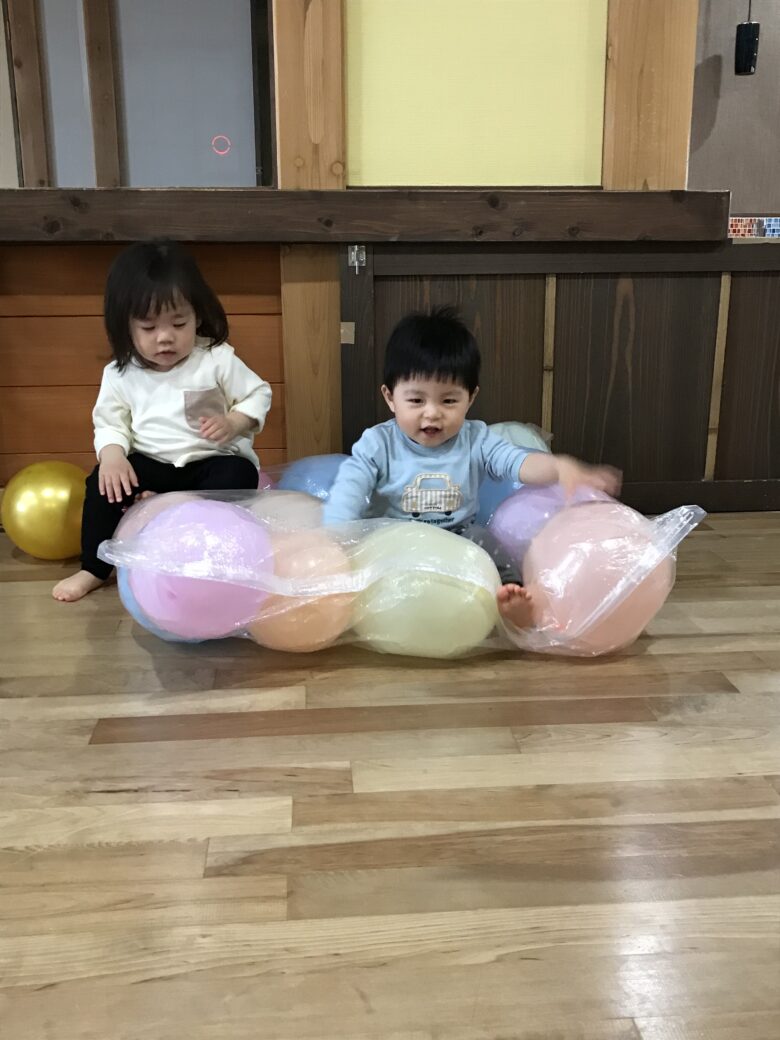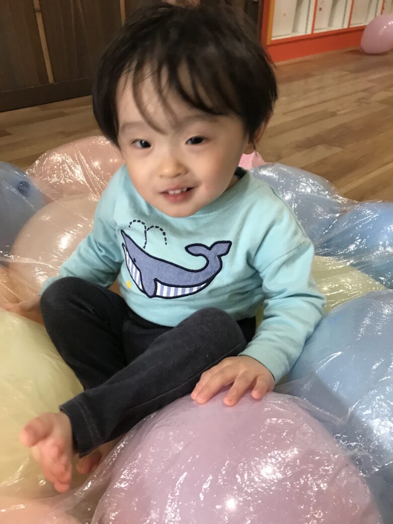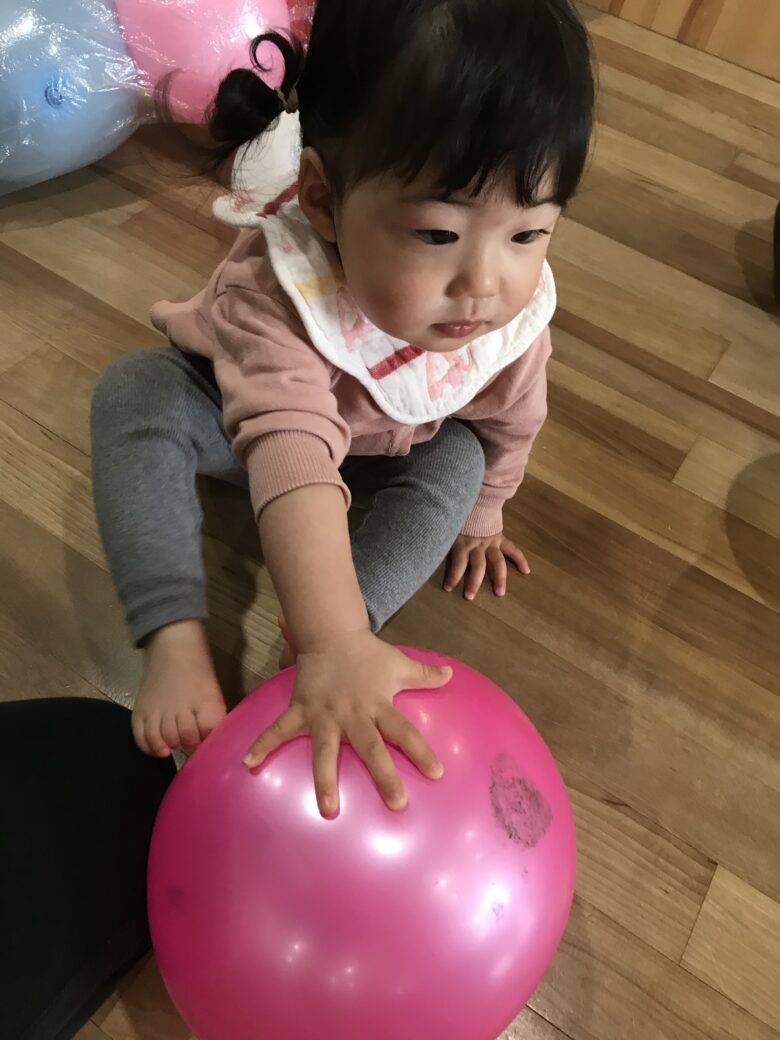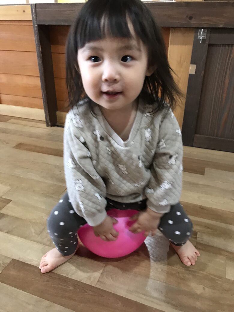ボールをたたいてみたり、ボールの上に乗って遊んでみたよ🙆🏻♀️🧡