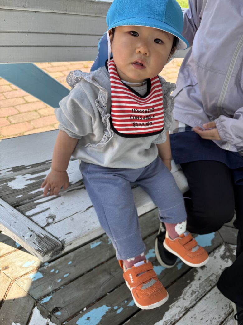 ベンチに座って休憩、、、初めて最後まで歩いて公園に行って疲れたかな🌟
