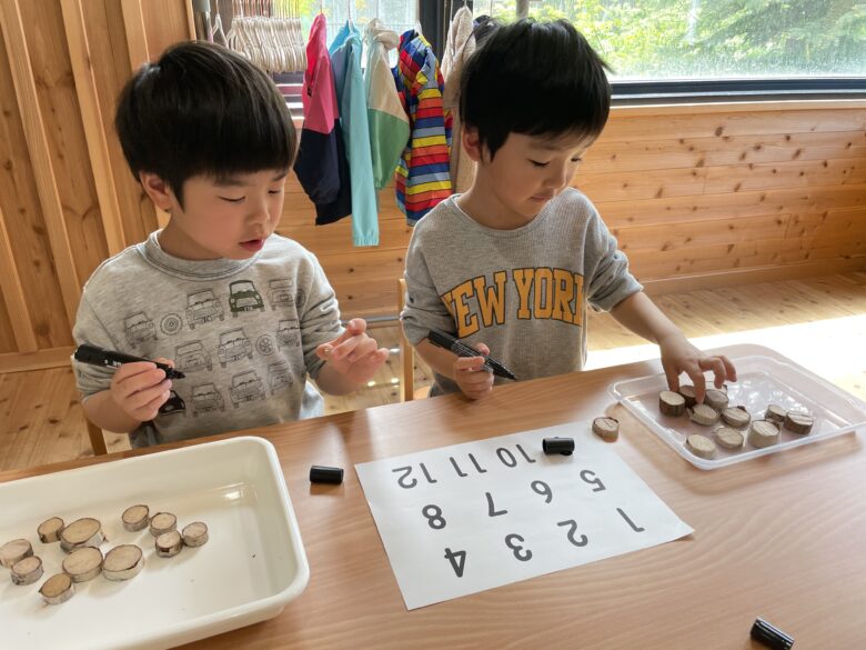 数字の書いてあるプリントを見ながら、子ども達自身で記入し・・・
