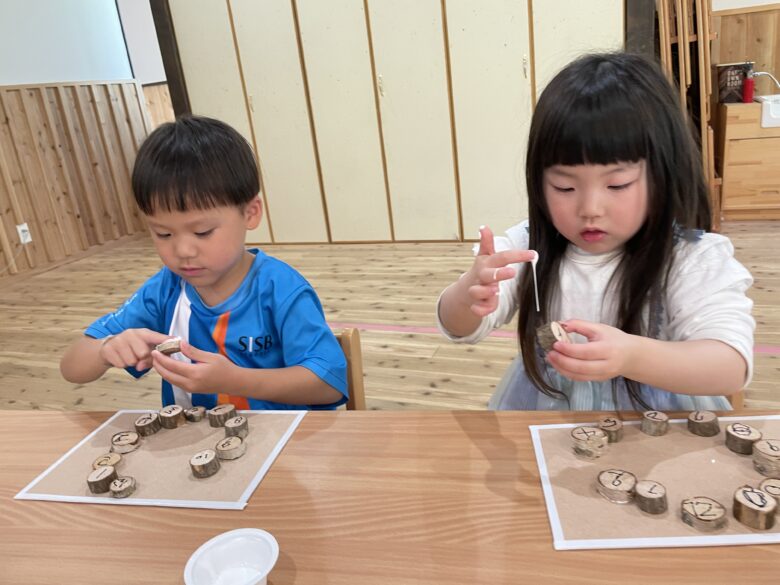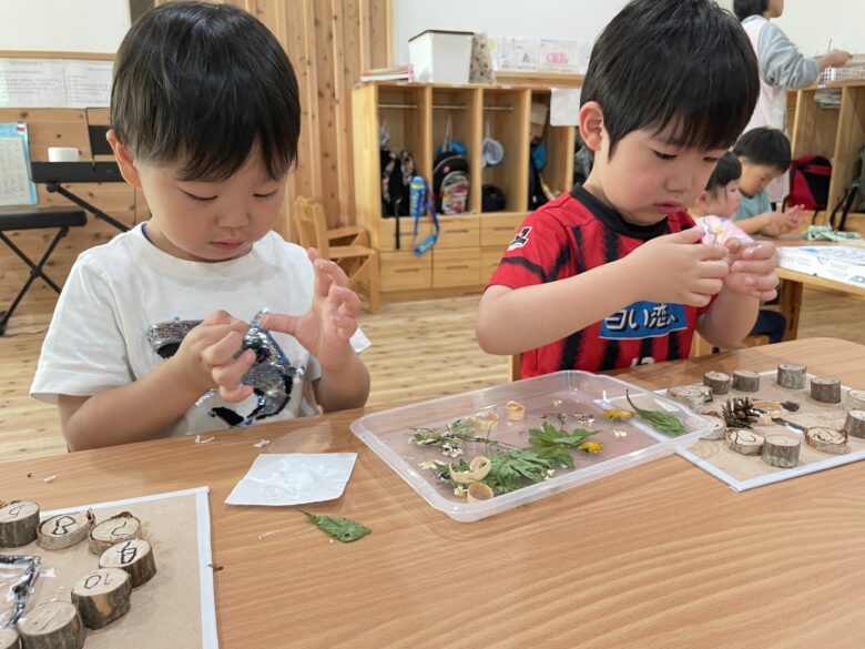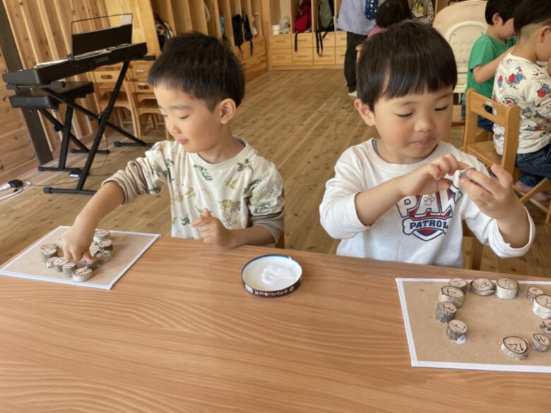 最後は木の枝で好きな活動の時間を貼ってもらいました⭐