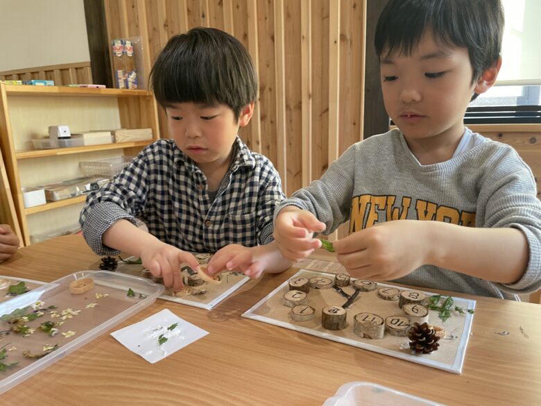 「午後遊びの時間が好きなんだ~!」「朝の会が一番好きだから、短い枝を9の所にするね!」等、子どもたち同士で会話を弾ませながら取り組んでいました🎶