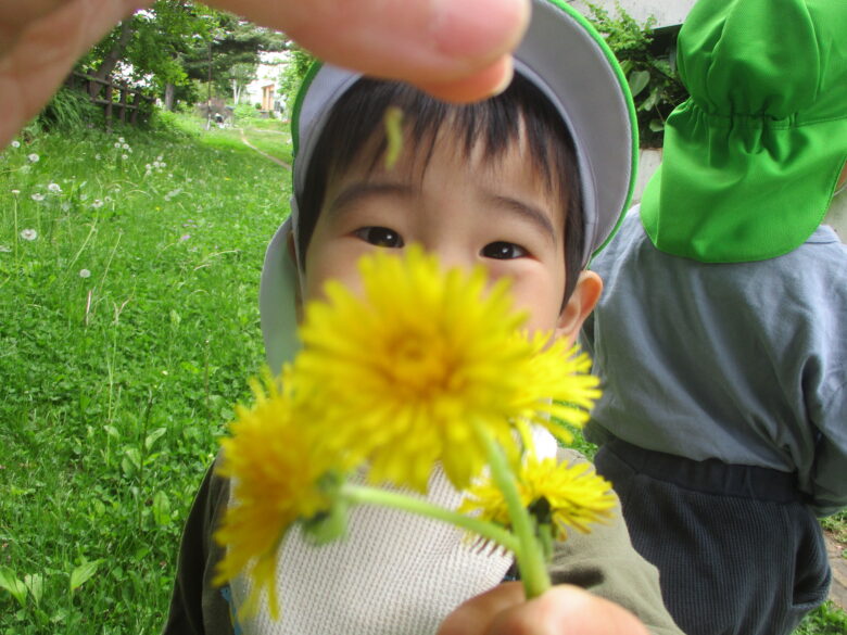 グラウンドに行くと、砂に興味がある子ども達です。 お友達に「はい、どうぞ」としている可愛い姿も見られましたよ♪