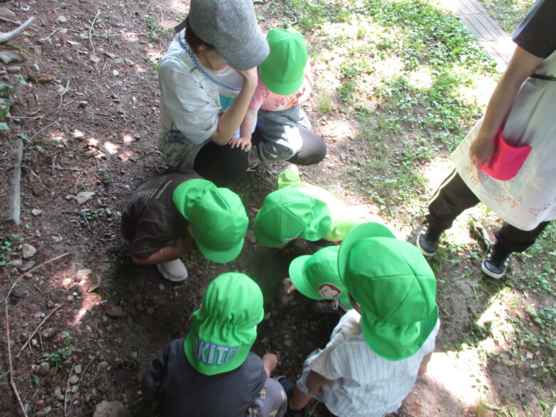早速何かを虫さんを発見した子ども達 「せんせい、みて」と教えてくれましたよ。