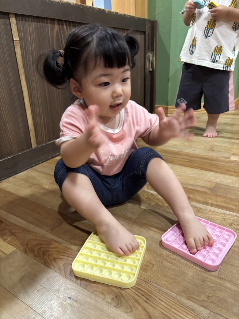 プッシュポンプで足つぼマッサージ🤣?気持ちよかったかな~