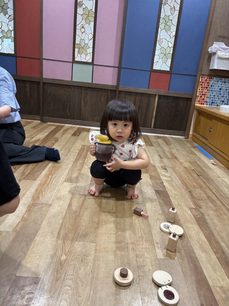 室内遊びでも汗をたくさんかいたのでみんなで水分補給をしました💧🥵