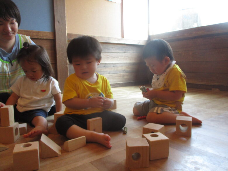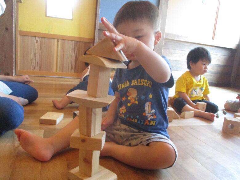 くり組さんは木の玩具を使って積み重ねたりと楽しく遊びました