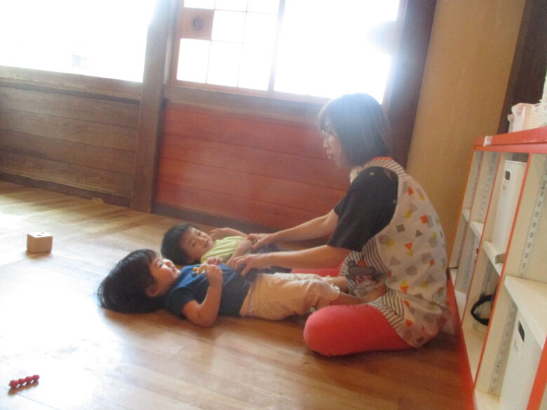 わらべ歌遊びをしてもらい楽しく過ごしていました!!