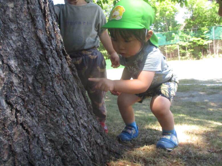 帰りに、藤野東公園に行ってきたんだ\(^_^)/ 木の皮がめくれていて、ケガしているのかなと思ったよ😞 お友だちも心配して見に来ていたよ。でも違うんだよね 安心したよ 木って不思議だな( ゚Д゚)