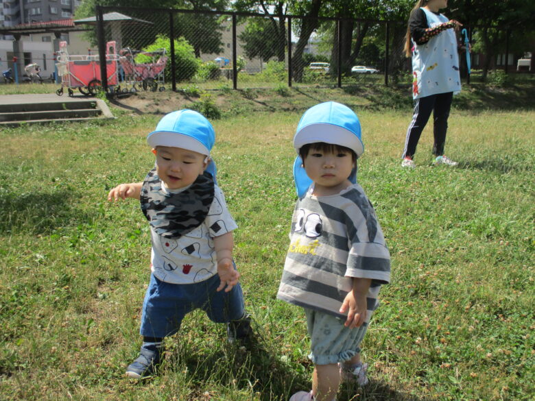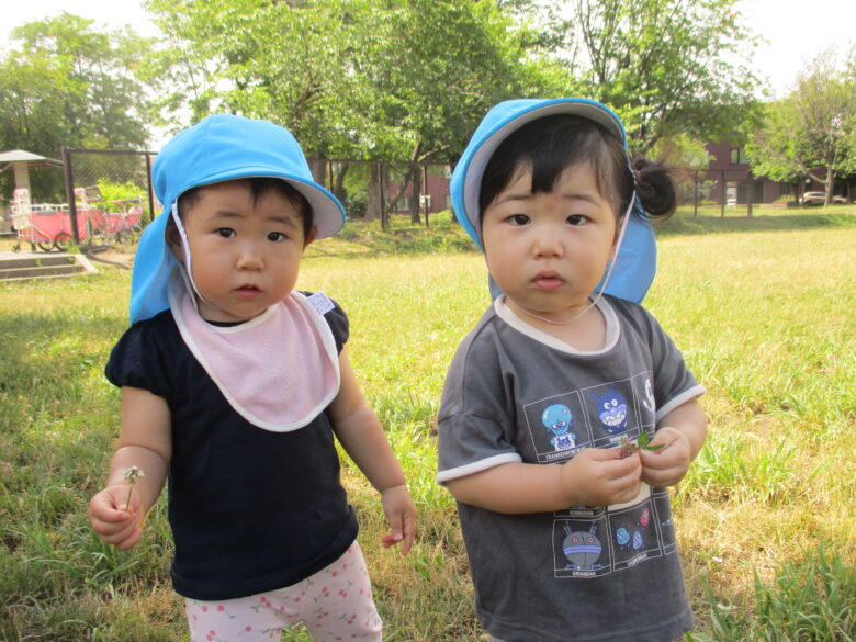 仲良く一緒に原っぱでお花を見つけていました😆✨