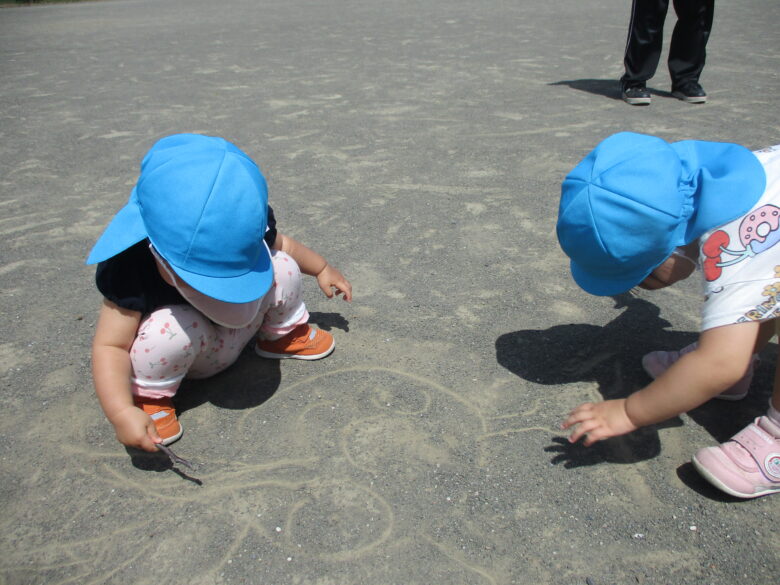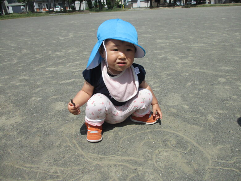 好きな小枝を見つけて砂の上でお絵かき💙💚