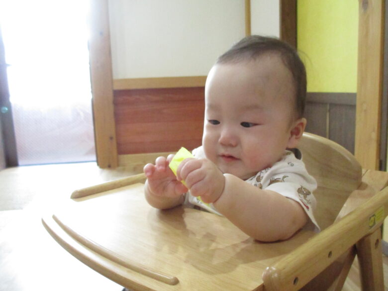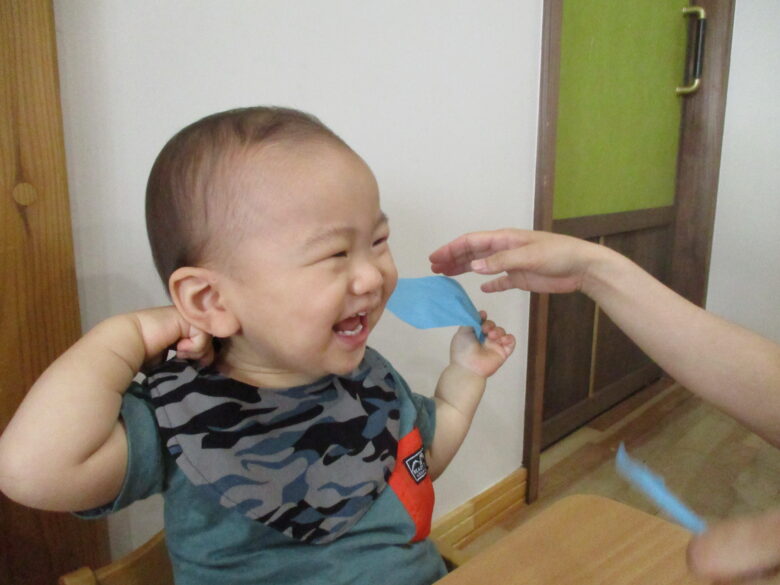 保育士を真似して上手にペタペタしました。