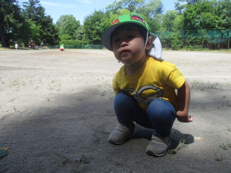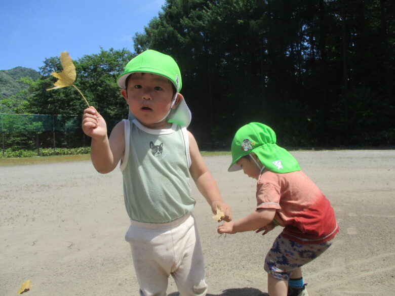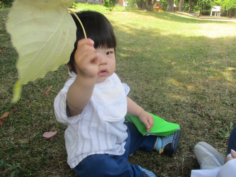 グラウンドでは葉っぱを見つけ拾ったり・・・